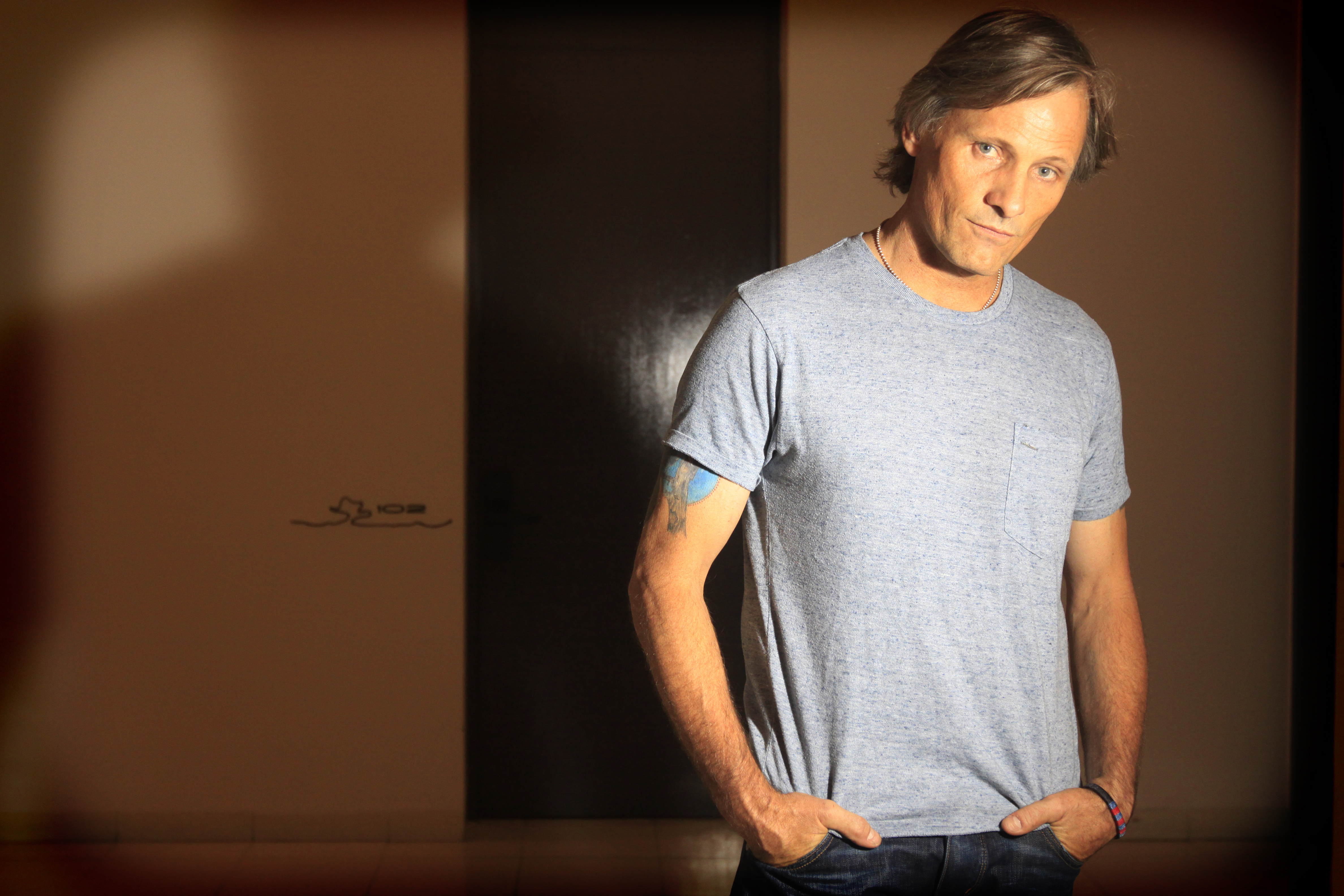 “¿Era lo que pensabas que ibas a ver?”, arroja Viggo curioso y expectante. El interés de la pregunta tiene que con ver con su primera película rodada en Argentina. Su presencia y su mirada amable imponen la calma. Calma zen. Incluso el tono de su voz se ve muy lejano al de un grito de gol de su amado club San Lorenzo de Almagro. Habla en un perfecto español, teñido por sonidos que denotan su residencia desde hace varios años en Madrid. “Es lo que pasa me joden el idioma los españoles, dos o tres días ya estoy bien de nuevo. Me corrompen, pero cuando vuelvo de acá me dicen, ‘¿qué te pasa qué hablás así?’, reconoce. En sus manos mantiene todo el tiempo un cuadernito con tapas de cartón y un elástico negro, se pueden ver anotaciones en letra manuscrita. Podría suponerse que guarda allí algunos de los poemas que suele escribir, pero no. “Son mis notas de grabación de la película, es como un diario de rodaje, lo tengo por si se me olvida algo”, explica el actor que en esta oportunidad se mete en la piel de dos hermanos gemelos, Pedro y Agustín, que se reencuentran luego de muchos años. Lo hace en “Todos tenemos un plan”, ópera prima de la argentina Ana Piterbag. El Tigre profundo, poblado de grises y paisajes desolados, el que no tiene nada que ver con lo que ven los turistas, es el marco perfecto para entretejer la trama de este policial negro. Y es el Delta el que también trajo recuerdos de su infancia, aquella que vivió en este país hasta los 11 años en que volvió con su madre recién separada y sus dos hermanos a su ciudad natal Manhattan, en Nueva York. A sus 53 años, Viggo cumplió el sueño de rodar en Argentina, “hace años que quería hacerlo”, confirma.